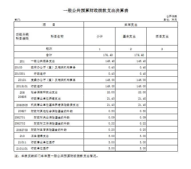 (一) 机关运行经费情况说明。2020年本部门机关运行经费支出176.4万元,机关运行经费主要用于办公正常开支。。