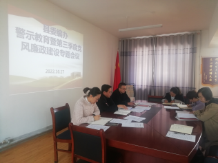 会上传达学习全县党员干部警示教育大会精神,通报了全县党员干部违纪违法问题查处情况及典型案例,并集体观看了警示教育片,主要负责人对全体党员干部进行了集中约谈。