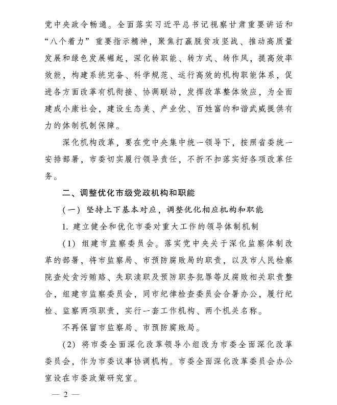 经中共甘肃省委、甘肃省人民政府批准,近日,中共甘肃省委办公厅、甘肃省人民政府办公厅印发《武威市机构改革方案》,全文如下: